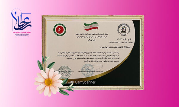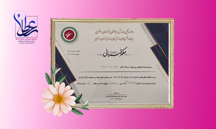 مجتمع آموزشی دخترانه عطار با افتخار، موفقیتهای ارزشمند نازنینزهرا حیدری را در مسابقات ورزشی استان خراسان رضوی تبریک میگوید.